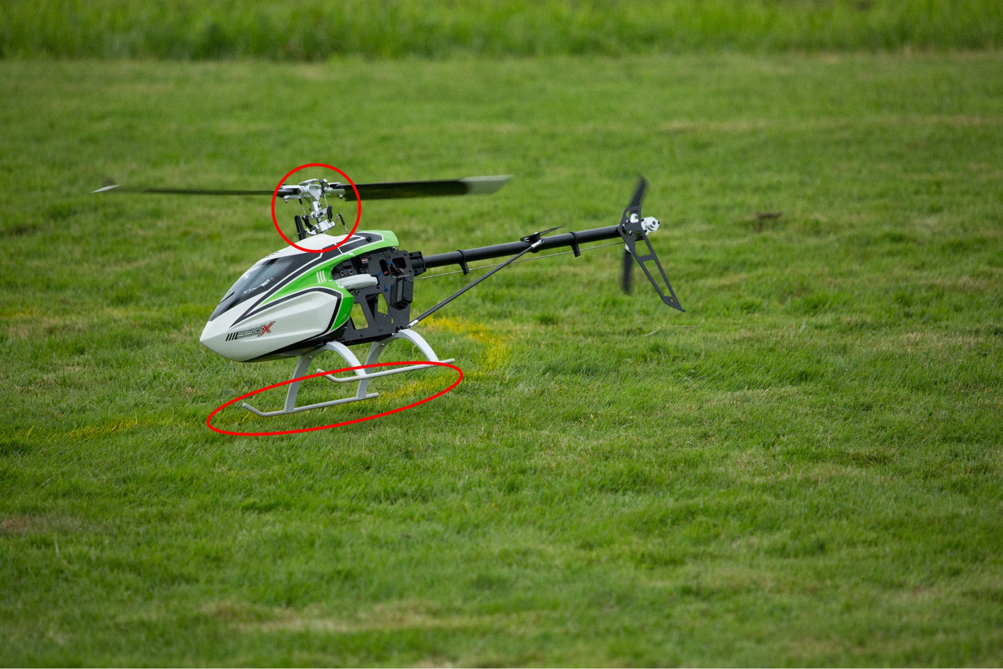 Bei genauem Betrachten sieht man wo die Taumelscheibe steht und wie knapp