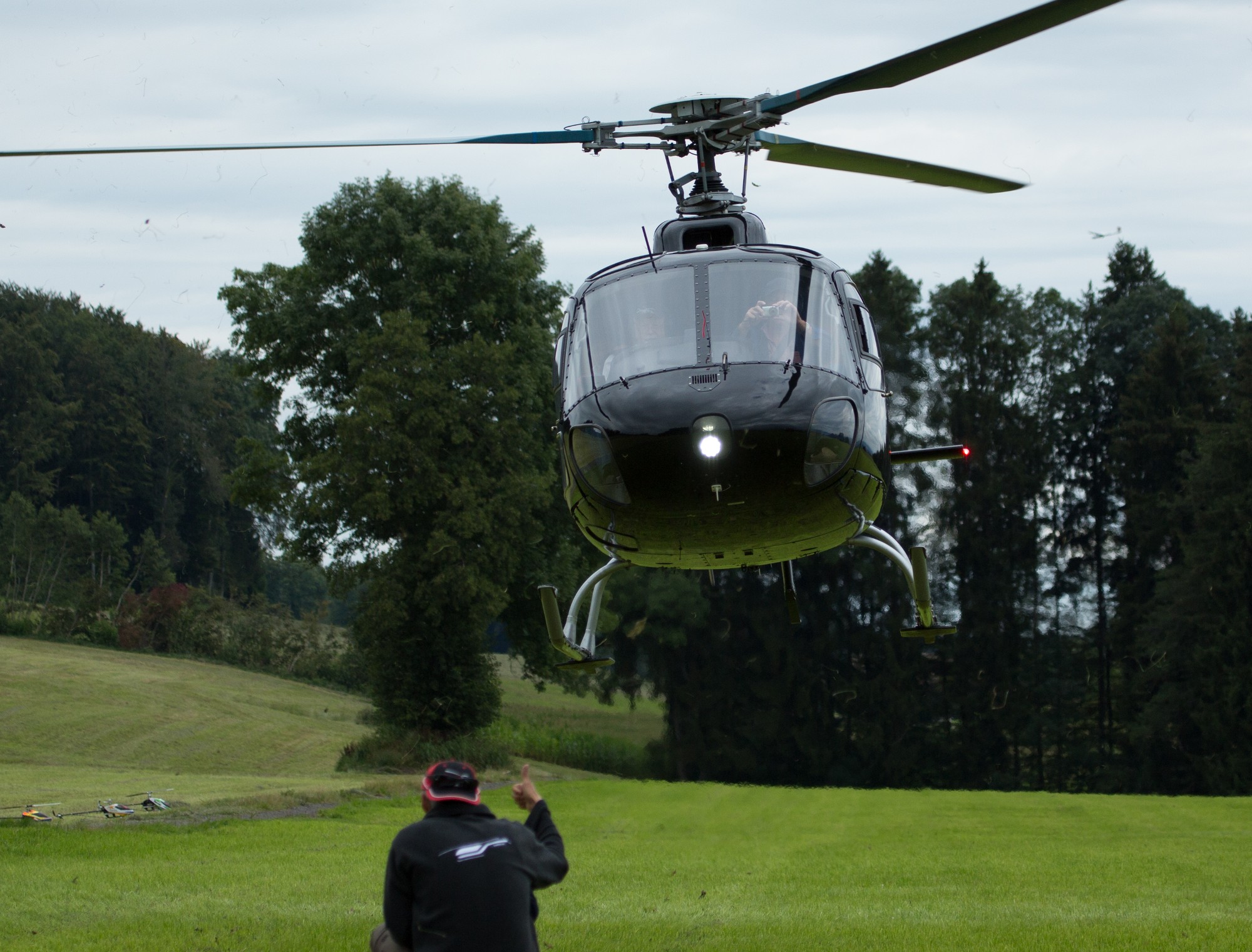 Uhr konnten mit dem freien Fliegen begonnen werden. Pünktlich um 12:00 Uhr trafen dann die Ueberraschungs-Gäste ein. Thomas mit einem Hughes 520N und Ruedi mit einem AS350. Ganz herzlichen Dank für Euren Besuch. |
